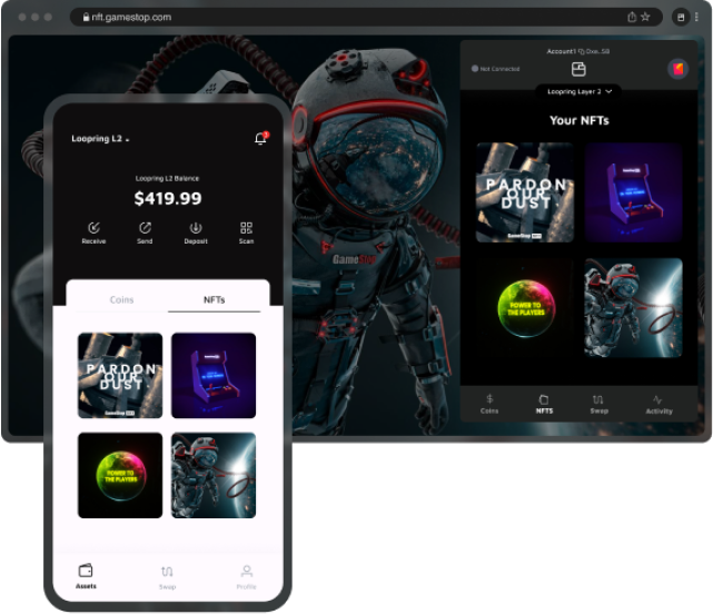 Connect to GameStop NFT, a marketplace where you can explore, buy, and trade digital goods. Expand your NFT collection and participate in the growing world of digital collectibles.